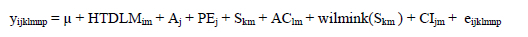 yijklmnp = pth test-day milk, butterfat or protein yield of cow j in lactation m in herd x test-date x parity x milkings group i, of season k, age class l and calving interval class n