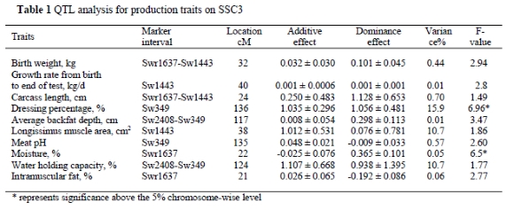 QTL analysis of production traits on SSC3 in a Large WhitexMeishan pig resource family
