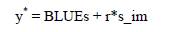 where y* is the test-day yields adjusted for heterogeneous variances, BLUEs are the best linear unbiased estimates of all fixed effects in the model and r is the residual variance. The adjusted yields (y*) were then included in (co)variance component estimation and in the national genetic evaluation for estimation of breeding values, using the same model as above, but adding the animal additive genetic and permanent environmental effects as random effects.