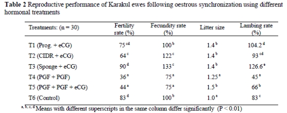 Keywords: Karakul ewes, oestrous synchronization, reproductive performance