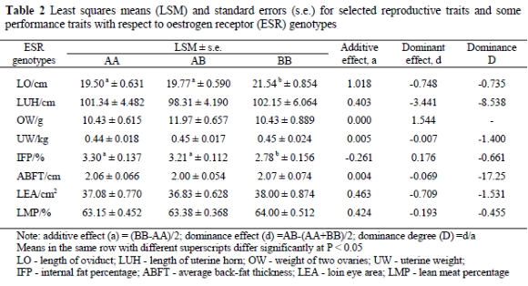 Keywords: Pig, ESR locus, female reproductive tract components, breed effects