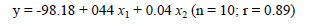 where: y is the production loss due to fire (kg/ha), x1 is the seasonal rainfall (mm) and x2 is the fuel load without burning (kg/ha).