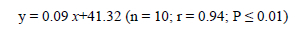 The simple linear regression equation obtained between aboveground phytomass production loss due to fire, with seasonal rainfall is as follows: