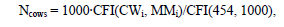 where, CFI represents a function of cow weight and milk production that yields annual feed required to sustain a cow given her body weight and milk production. For this study, CFI followed Anderson et al. (1983) and number of cows was subject to a resource constraint of 1000 stock units, with a stock unit defined as a cow weighing 454 kg and producing 1000 kg milk per lactation.
