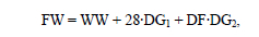 The feedlot phase of production was simulated in two phases. The first phase was a 28-d adaptation period when a ration of moderate energy density was fed. Average daily gain (DG1) and feed intake during this phase were assumed similar to that attained in standardized (Phase C) bull tests. This was followed by a longer second phase during which a more energy dense ration was fed, with average daily gain (DG2) increasing by 0.3 kg/d and feed conversion decreasing by 25% accordingly. Final weight (FW) was simulated as: