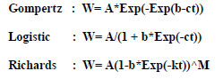Widely used non-linear growth models, Gompertz, Logistic and Richards were fitted to estimate the mean age-live weight relationship. The mathematical relations of these models are as follows: