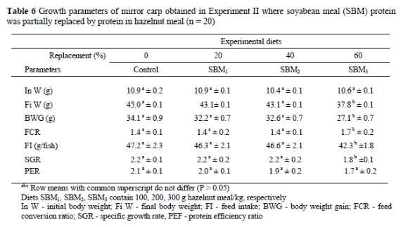 Partial replacement of fish and soyabean meal protein in mirror carp (Cyprinus carpio) diets by protein in hazelnut meal