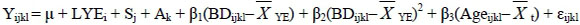 YE)2 are the linear and quadratic effect of the birth day deviated from the year-environment subclass mean; (Ageijkl -