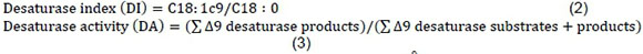 The desaturase indices were used as an indicator of the Δ9 desaturase activity using fatty acids that are substrates and products for Δ9 desaturase.