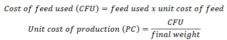 The economic analysis of catfish production when feeding pellets, tilapia, and earthworms is shown in Table 7. It was less expensive to produce a gram of catfish by feeding with pellets and tilapia than earthworms.
