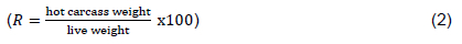 The slaughter yield of the studied animals was calculated using the following formula (Meyer 2014):