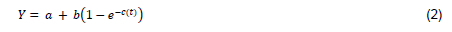 The gas production rate per period was determined by dividing the volume of gas produced during each period by the corresponding number of hours. Cumulative gas production data were modelled using the Ørskov & McDonald (1979) non-linear model: