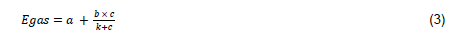 Gas production potential (Pgas) was determined as the sum of fractions a and b, whereas effective gas production (Egas) was computed using the formula: