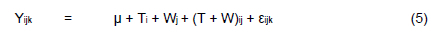(T + W)ij = the interaction of week and treatment,