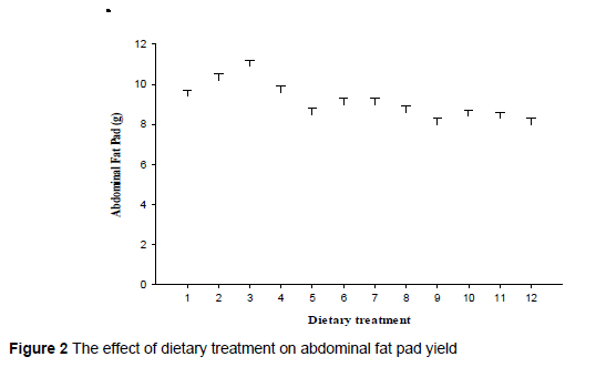 The result that dietary treatment had no marked effect on cuts of economic importance agrees with previous observations. Carcass yield of cuts of economic importance in broiler chickens were not substantially different among the various dietary treatments (Garcia et al., 2013; Torres et al., 2013). The results of the current study indicate that abdominal fat pad was substantially lower in birds fed complete sorghum diets. Medugu et al. (2010) highlighted that the abdominal fat pad was lower in birds fed millet diets than in those fed maize- and high-tannin, sorghum-based diets.