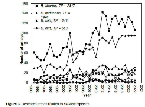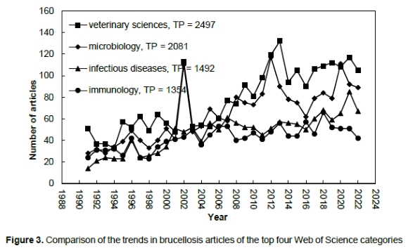 Keywords: research trends, brucellosis, Brucellae, Brucella, zoonosis, bibliometric, citation analysis, Web of Science