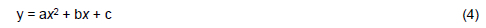 where y = response variable; a and b = coefficients of the quadratic equation; c = intercept; x = MSC level (g/kg); and -b/2a = x value for optimal response.