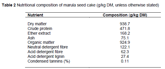 Mdziniso, P., Dlamini, A., Khumalo, G. & Mupangwa, J., 2016. Nutritional evaluation of marula (Sclerocarya birrea) seed cake as a protein supplement in dairy meal. J. Appl. Life Sci. Int. 4(3), 1-11. http://dx.doi.org/10.9734/JALSI/2016/23273. [ Links ]