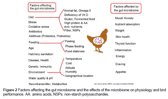 The quantity of feed and water intake and the environment surrounding poultry are important factors that are reflected in the risk of dysbiosis. The adverse effects of dysbiosis on bird health include decreasing performance, an increased risk of zoonotic pathogens and food contamination, as well as poorer health, welfare, and economic outcomes (El-Saadony et al., 2021). The duration of exposure to dysbiosis and pathogenic bacteria is also an important factor. Prolonged dysbiosis increases the sensitivity of the gut microorganisms to the overgrowth of harmful bacteria (Abd El-Hack et al., 2021).