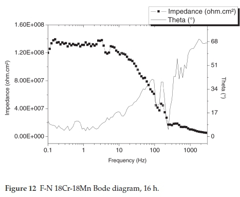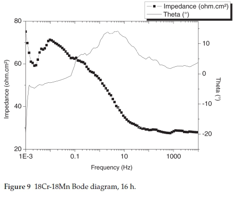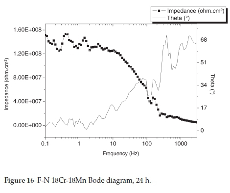 In this article we provide new information on 18Cr-18mn steel, including Bode diagrams, which indicate steel polarization resistance; this basic corrosion test has to date not been applied to 18Cr-18Mn steel.