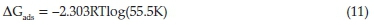 Then the Gibbs energy of adsorption (∆Gads) was evaluated from Equation (11).