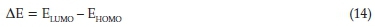 With the Fukui analysis, it is easier to accelerate the reactive areas in terms of electrophilic (f-) and nucleophilic (f+) attack. EHOMO is often associated with the electron-donating ability of a molecule, while ELUMO shows its electron-accepting ability. According to the results presented in Table 8, the higher energy value of EHOMO reveals the ability of a molecule to donate an electron to an empty molecular orbital. Thus, an increase in the EHOMO value facilitates adsorption of an inhibitor, while the energy of LUMO shows the potential of the molecule to accept electrons.54-55 The energy gap can also be used to predict the inhibition efficiency of a compound or to develop a theoretical model for explaining the structure and confirmation barrier in many molecular systems. In the same vain, minimum values obtained from the energy gap ELUMO-HOMO gives a unique inhibition efficiency since the energy to displace an electron from the last occupied orbital will be reduced to the barest minimum.56-59 Energy gap (AE) is calculated by using the Equation (14):