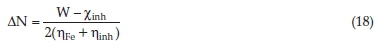 The fraction of transferred electrons (AN) can be evaluated by using the following Equation (18):