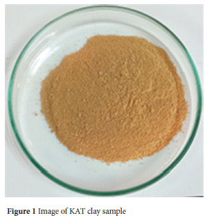 The clay used in this study is referenced KAT. It comes from Katiola (north of Ivory Coast), a town located at 8°08' north latitude and 5°06' west longitude. In addition to the raw sample (Figure 1), the fine fraction (φ < 2 μm) obtained by sedimentation13, was made homoionic by sodium (KAT-Na) or magnesium (KAT-Mg).