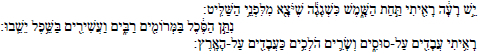 It is important to note the repetition in the text, which reveals a certain rhythm. This is a common feature in literary texts, especially poetry.35 There is a specific meaning that can be found in the repetition of a word or phrase in a given text. In the case of Eccl 10, there is a repetition of רָאִ֖יתִי (ra'itiy), which means "I have seen." The word ra'itiy in verse 5 appears again in verse 7. With this repetition, the pattern is then changed into a different one: