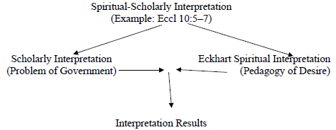 This research is pivotal in that it highlights how Eckhart's spiritual interpretation can enrich the discourse of biblical studies in Indonesia.14 By forging a dialogue between his interpretation and modern methodologies using the text of Eccl 10:5-7, the study aims to demonstrate the potential fusion of spiritual and scientific readings in the Indonesian academic context.