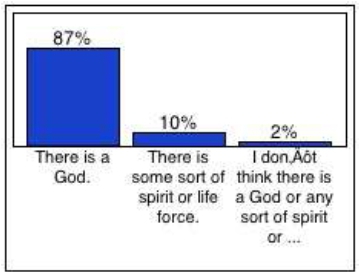 Some 87% of respondents said they believed that a god existed, 10% said they believed in some sort of spirit or life force and 2% said that they did not believe that a god existed. To the question 'how important is religion to you?' , which was asked on a five-point scale (with 1 indicating ' not important at all' and 5 indicating ' very important' , some 24% of the learners responded with 'important' and 57% with 'very important'. In the international sample, South Africa was the only country where a majority (57%) chose point 5. It was interesting to note that 65% of girls as compare to 35% of boys said that religion was very important.