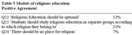 To questions on different models of religious education and how it supported dialogue (see Table 5), there were mixed responses.