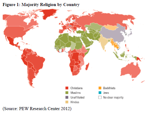 Despite secularization, the global religious landscape in the 21st century suggests that religion is vital in the lives of individuals and communities. More than 80% people identify with a religious group, according to the Pew Research Center's Forum on Religion and Public Life (PEW Research Center 2012:9). In a comprehensive study, the Center has observed that 5.8 billion adults and children in more than 230 countries surveyed, representing 84% of the 2010 world population of 6.9 billion, are affiliated to some form of religious order (PEW Research Center 2012:9). This finding strongly suggests that an adherence to religious values and norms forms an integral part of people's lives as illustrated in Figure 1.