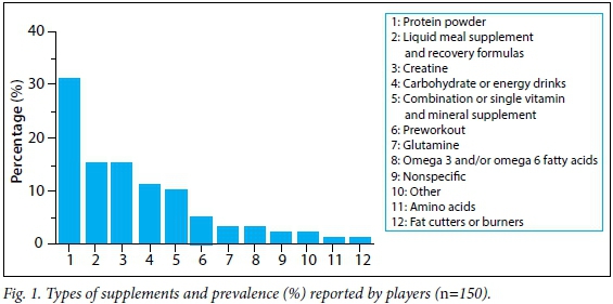 In a KwaZulu-Natal-based study in SA, 54 - 55.5% of rugby-playing school boys (age 16 - 17 years and under 13 years, respectively, N=222) reported using some form of supplementation.[5,6] Moreover, the introduction and misuse of supplements may contribute to the increase in positive doping tests or steroid use in school-based sport, as well as an increase in other substance abuse (e.g. alcohol).[7,8] In a 2011 study on use of steroids in 20 rugby-playing schools (also in KwaZulu-Natal) it was found that 4.6% of the 9 824 male respondents had used androgenic anabolic steroids, and 2.7% of males were currently using them (Hagemann G, 2014, personal communication). Nutritional supplements are often viewed as a 'safety net' by young athletes, because they lack the appropriate knowledge relating to the quantity and quality of their dietary intakes.[5] A single rugby-specific questionnaire-based study in Ireland showed nutrition knowledge (based on a composite score) to be poor among young rugby players (age 15 - 18 years).[1] Other studies in adolescent athletes in other sports have shown a similar trend.[5,9-13] In a recent SA study Varsity Cup players' (mean (standard deviation (SD) age 21.9 (1.2) years) habitual dietary intakes and match-day strategies were found to be suboptimal, and supplement use was high.[14] In other studies supplement use has also been linked to pressure from coaches, peers, competitors and parents,[4,6] often reinforced by unsubstantiated and exaggerated claims made by an industry which is practically unregulated.[4]