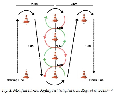 10. Raya MA, Gailey RS, Gaunaurd IA, et al. Comparison of three agility tests with male servicemembers: Edgren Side Step Test, T-Test, and Illinois Agility Test. J Rehabil Res Dev 2013;50(7):951-960. [doi: 10.1682/JRRD.2012.05.0096] [PMID: 24301432] [ Links ]