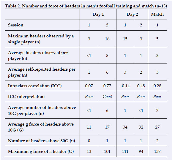METHODS: Exposure to headers was observed over three days of women's and men's football. The number of headers at each session was determined through video analysis, and the G-force was determined via an impact tracker. Ocular markers were assessed at the start and end of the three days, and the results were compared to determine if there were any changes. Self-reported exposure to heading was recorded after each session and compared to the number of headers observed through video analysis, to assess the validity of players' self-reporting.