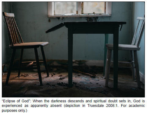 As Truesdale (2008:1) aptly pointed out: When darkness descends, the experience of the absence of God sets in. That which could be described as the "eclipse of God" - the apparent absence of God, especially in instances where God is projected as pleasant and always automatically there at our disposal.