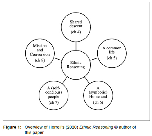 In his book, Horrell conducts a lengthy study (in Chapters 4-8) of almost two hundred pages, drawing, inter alia, on Buell, Barth, Hutchinson, and Smith, illustrating how we can hardly come to another conclusion but to see how all the notions of ethnic identity construction were evident in early Christian identity construction (Esler 2022; 1 Peter 2:9). The following ethnic categories are discussed: