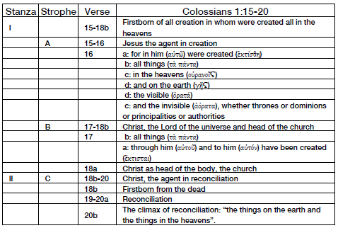 The structure of Colossians 1:15-2028 can be summarised as follows:29