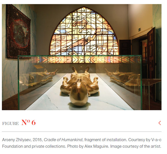 Zhilyaev combines religious, political, and scientific narratives to produce a conceptual umbrella for the individual sculptures that are artistically interesting but fail to bond to each other and support his intent.