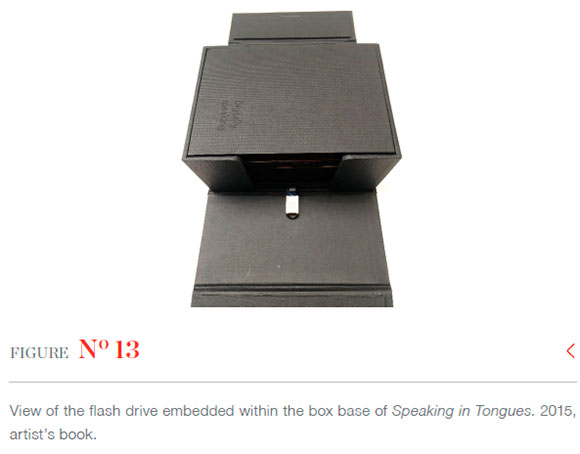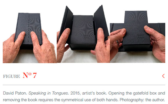 David Paton. Speaking in Tongues. 2015, artist's book. Opening the gatefold box and removing the book requires the symmetrical use of both hands. Photography: the author.