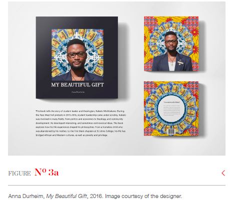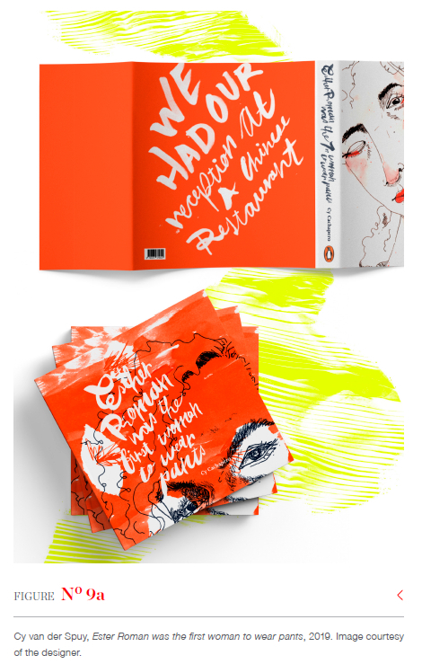 This extract also illustrates how the text informed the designer's approach to imaging and typography which is eclectic, reflective and authentic to the narrative of the book. Durrheim was able to achieve this because of her direct access to the protagonist and insight into his life experiences.
