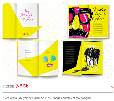 Kiara White's book, My granny's memoir, and systematic project development, provide an apt example of how Their research and writing informed her design and decision-making processes. White (2023) explains: