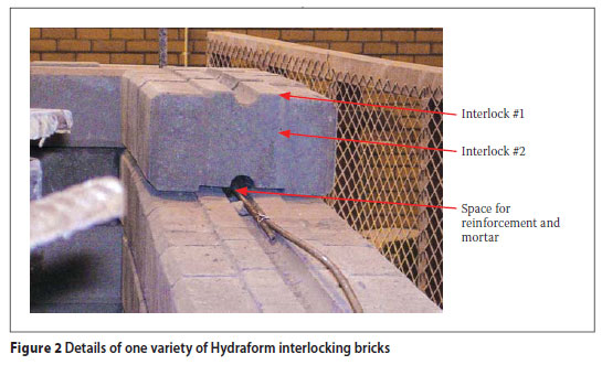 The definition of a dry-stacked brick or block structure is one in which there is no mortar to bind the bricks together. The bricks are held in place by gravity using a lock-and-key type mechanism (see Hydraform 2009 for a comprehensive summary of such systems). Since no mortar is used, the construction is simplified and becomes economically competitive. However, the analytical design of drystack brick structures is complicated for a number of reasons, including the non-linear behaviour of the friction and keys between the bricks.