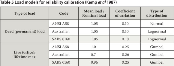 ii. Including reliability models for dead (permanent) and live (variable) loads into the performance function, using the models on which the implementation and calibration of limit states design for South Africa were based.