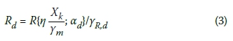 Equations [8] and [9] represent design values in accordance with a multiplicative factor with a value of less than one; the same convention of a resistance factor φ < 1 is applied by North American, Asian and Australian codes. In accordance with the convention of dividing by a factor γ > 1 (as implied by Equation (3)) Xd is inverted according to Equation (10):