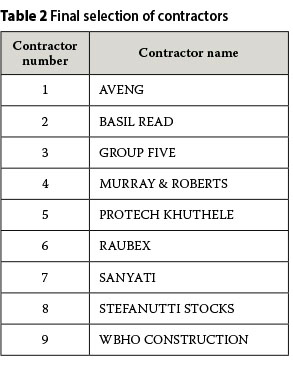a. Contractors currently active and registered as grade 9CE of the Construction Industry Development Board of South Africa (CIDB 2012).