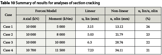 ■ Modelling the effects of cracking of the pylon box section: In addition, the analyses of the concrete pylons with both cracked and uncracked sections were compared. It is important to determine the influence of the implementation of properties of cracked sections in FE models on the overall behaviour of the structure. Both the periods of oscillation and the force distribution will differ due to cracking of the sections.