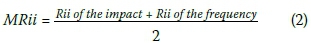 ■ Frequency of occurrence: The results are spread in more categories for frequency than impact (five of the six categories). This, however, only indicates the frequency of occurrence and is not a useful measure on its own, and as such was used to calculate the MRii.