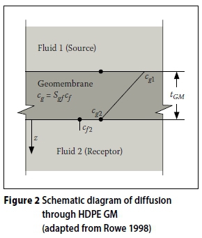 Based on Equation 5, the mass flux across an HDPE GM of thickness tGM is thus given by: